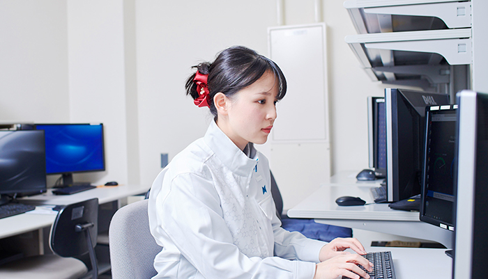 実験ではいつもクリーンな結果が得られるわけではないが、計算科学では実験をしなくてもクリーンな結果が得られる。物質解析研究部の計算科学グループは、計算科学の技術を駆使してシミュレーションやビッグデータの解析を行い、新技術や新製品の創出を支援している。その分野でキャリアをスタートさせた若き研究者A.K.は、どのように計算科学の研究者として成長しようとしているのだろうか。