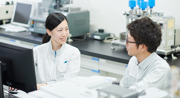 入社間もない頃、私は、先輩たちを見て「すごいなあ。見習いたい」と思っていた。成果が出ない時でも決してあきらめず、次々と化合物の配合を変えたりしながら粘って成果につなげていく姿を見ていたからだ。今は後輩もできて、私自身が見られる立場だと思うと、「しっかりしなきゃ」という想いがある。