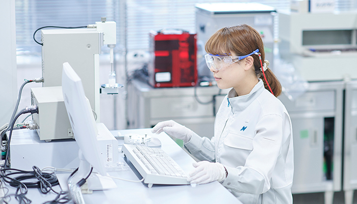 新材料の開発のスタートでは、あらかじめターゲットとする用途や業界が定まっているケースが多い。その一方で「おもしろい化合物ができた!」がスタートになるケースもある。「この化合物は、どんな用途で、どんな業界に使ってもらえる材料になり得るのだろう!?」と検討することがスタートになるのだ。M.S.が担当しているゲル化剤も、まさにそんな材料。彼女は、どのように新材料を世に送り出そうとしているのだろうか。