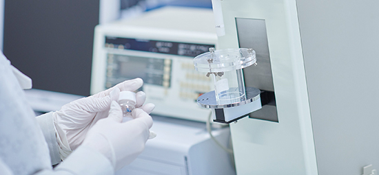 研究では、テカリを抑えるとか、さらさらするとか、そんなニーズに対応したデータを出すにはどんな実験系を組めばよいか、自分で考えて実行していく。たとえば、“テカリを抑えるソフトフォーカス効果”をどうデータにしようかなと思ったら、ディスプレイ研究部に反射光測定装置があるのを思い出して、借りてみたり。みんなで手のひらに着けて「なんかさらさらするね」って言っていたら、化粧品メーカーで”被膜による保湿効果”というニーズがあると聞けて、摩擦テスターでさらさら感を示すデータを取ってみたり。ニュアンスや感覚をデータで示すためにさまざまな実験を重ねていく。