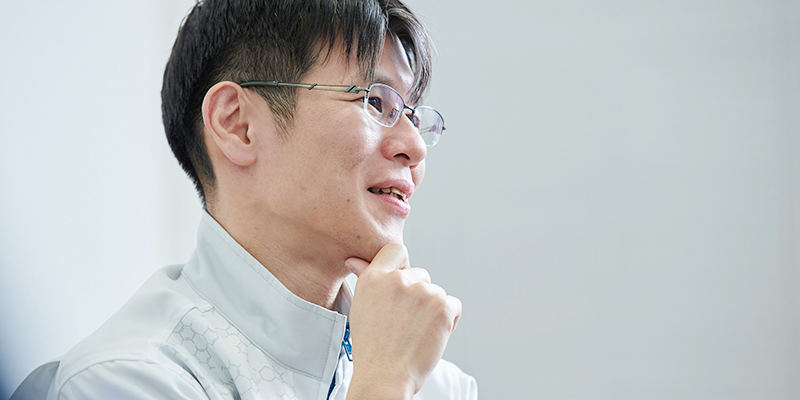 「“研究が好きなんだな”と副社長に言われましたよ。“じゃあ、やってみるか”と」入社して最初に担当したのは、それまで学んできた分野とはまったく畑違いの半導体材料の開発。それでも戸惑いなどは感じなかった。
